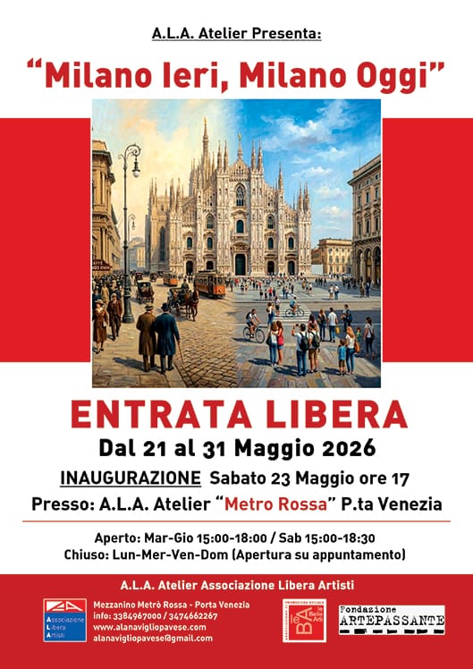 Collettiva Soci A.L.A. di Pittura e Fotografia Milano Ieri, Milano oggi, una mostra di visioni Fotografiche e Pittoriche dei cambiamenti della nostra Milano. Dal 21 al 31 Maggio 2026;...
