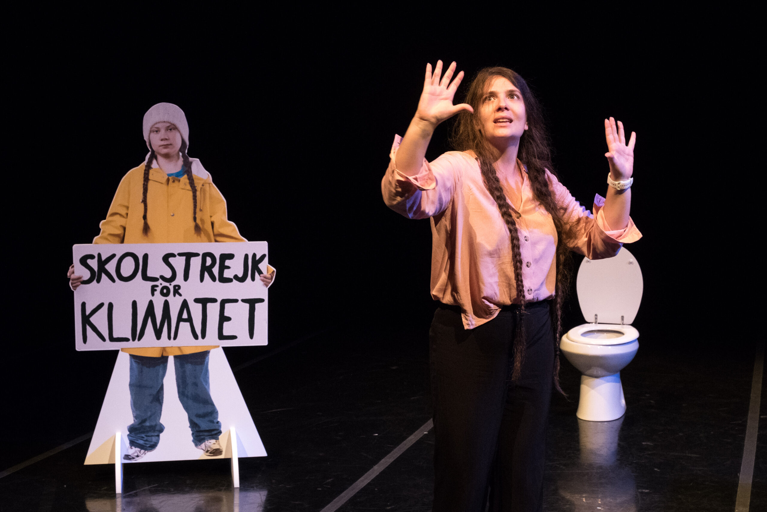 Una giovane donna trentenne, nell’intimità protetta del suo bagno, attende con apprensione l’esito del test di gravidanza appena effettuato. Accanto a lei la sagoma a grandezza naturale di Greta Thunberg, la nota attivista per il clima. Eroina generazionale ed amica immaginaria, Greta è la sola a cui la protagonista si sente di confidare i suoi interrogativi e le sue paure. Da questo flusso di pensieri emerge un inconscio tormentato dall’ansia esistenziale e dalla prospettiva di un futuro globale nero e senza speranza. Dal groviglio di pensieri emergono molti argomenti di attualità: l’ecologia, il rapporto con le nuove tecnologie, i diritti LGBTQ+, le disuguaglianze economiche e sociali, temi di fronte ai quali la protagonista si sente disarmata, al contrario del suo alter-ego Greta, icona e simbolo sociale che sembra affrontare di petto ogni situazione ed uscirne vincitrice. Il risultato è un’affabulazione dai toni ironici e graffianti che lasciano spazio a momenti di fragilità e tenerezza.
