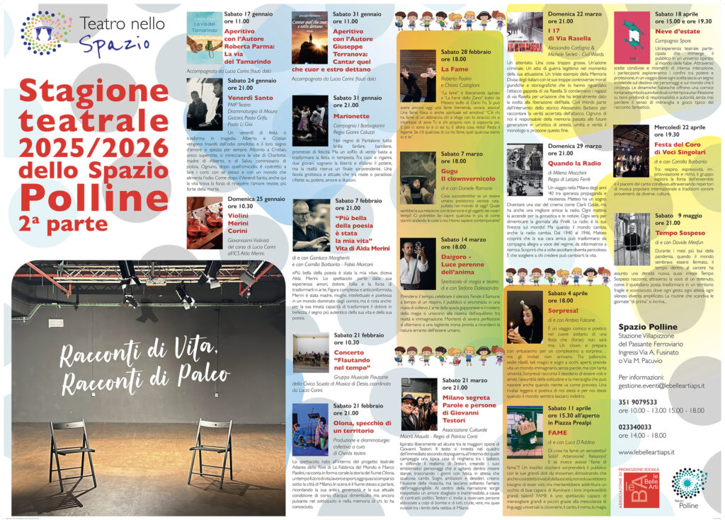 “La fame” è liberamente ispirato a “La Fame dello Zanni” tratto da “Mistero buffo” di Dario Fo. Si può avere ancora oggi una fame tremenda, vorace, atavica? Una fame fisica o anche spirituale ed emotiva? Non è anche l’arte un nutrimento, dell’anima?